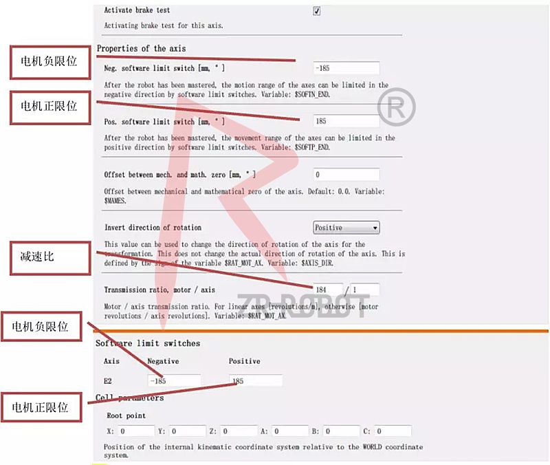 圖10參數主要有限位,電機轉向,軸的類型,減速比等參數