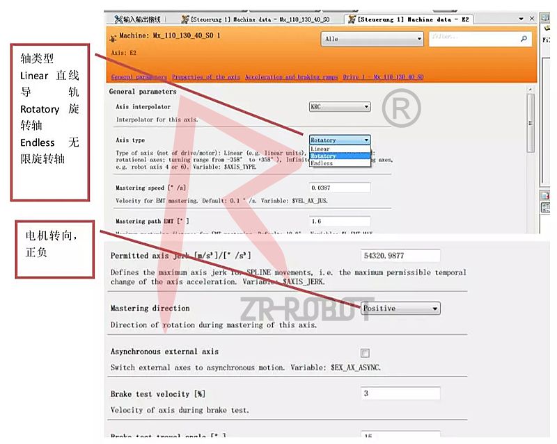 第五步,現在開始添加外部軸,當kuka機器人有兩個外部軸系統時,原則上先添加直線導軌外部系統,再配旋轉軸外部系統。下面配置示例的就是直線導軌外部軸。